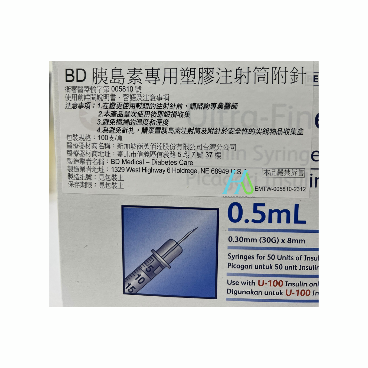 【BD】 BD 胰島素針 0.5cc 30G*5/16(0.30mm*8mm)
